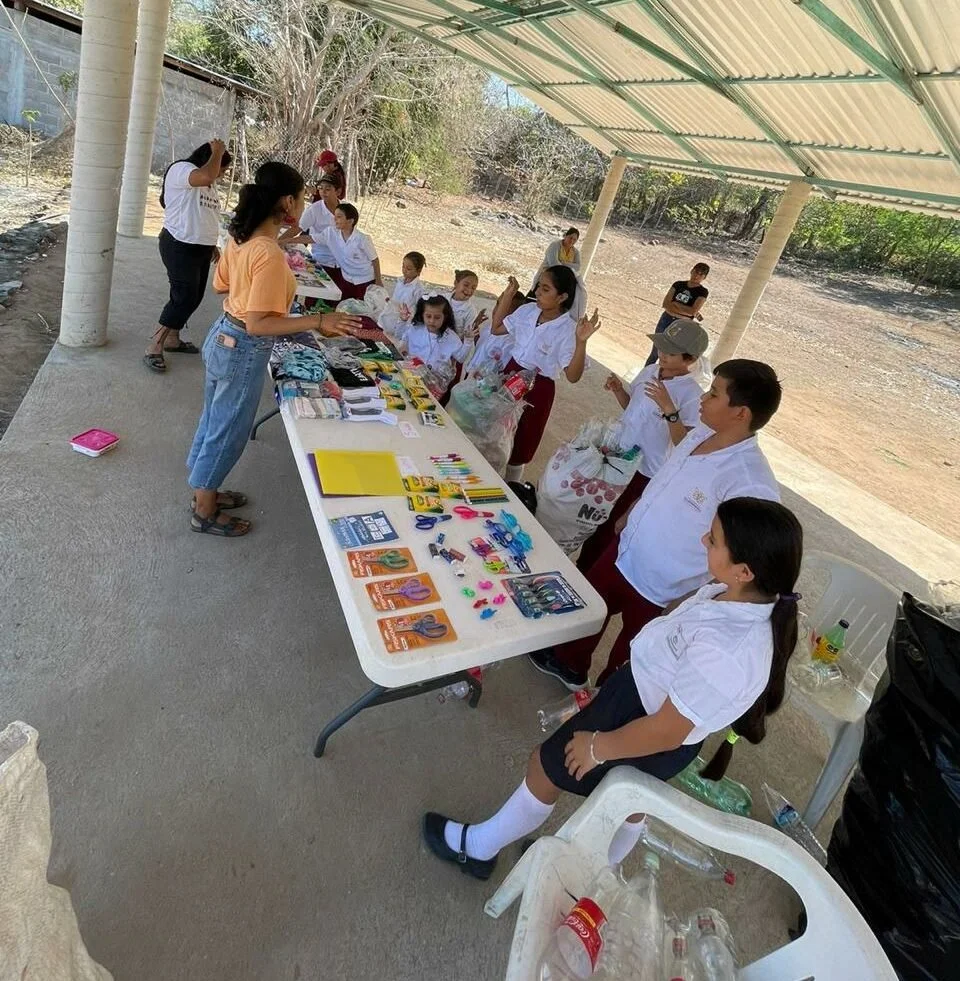 “When the kids arrived we quickly realized we had underestimated how much they would collect and I had undervalued the ‘currency.’ They each had huge bags packed full with 20 or more bottles which they were delighted to exchange for school supplies. It was a great activity to flip their perspective on rubbish from something easily thrown on the floor to something that holds value. We are looking forward to organizing more events in all the communities and seeing the ripple effect of this initiative. The kids from Las Placitas are already coming to class telling me how many bottles they have collected for our next event.”