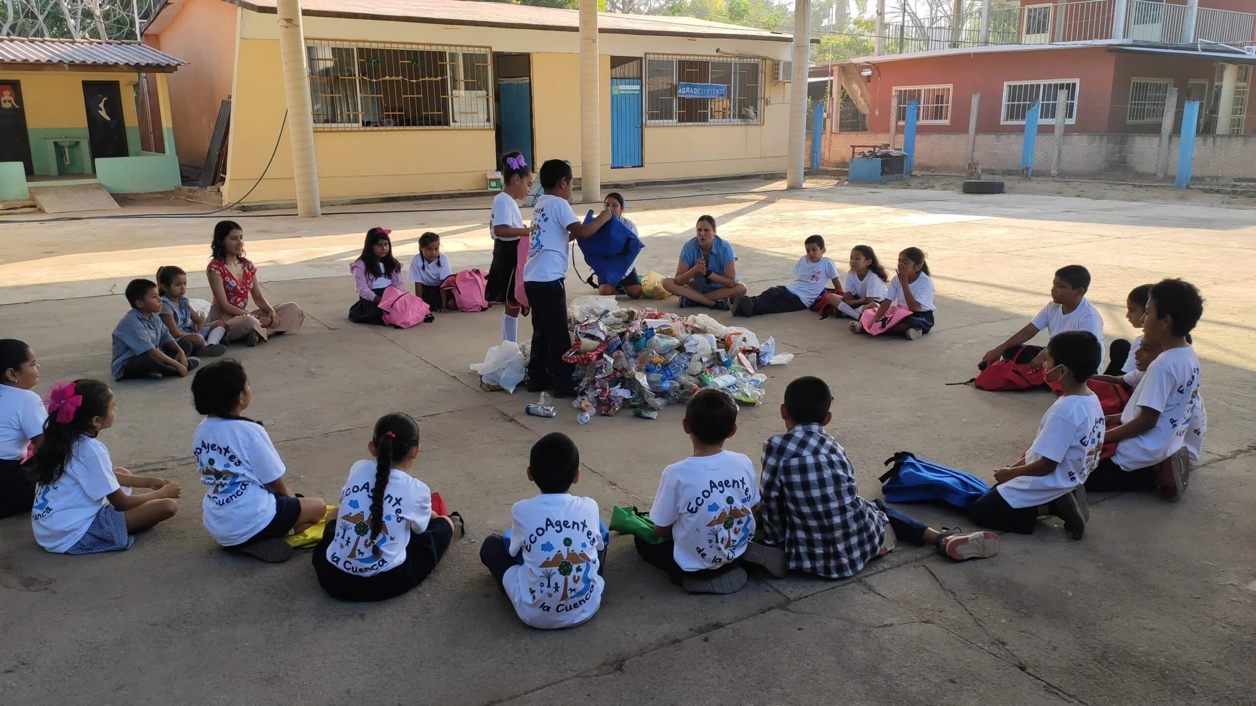 Along with their T-shirts the children were gifted backpacks that showcased the words “Aprender Importante” which translates to “to learn is important.” For their first mission as EcoAgentes Ximena and Patricia tasked the children with filling their backpacks with all the trash they saw on their way home and to school the next day. With the promise of a prize the next day the 40+ children returned with backpacks stuffed full of trash and there began their first EcoAgente lesson. Upon unloading all the trash into a pile in the playground the children were asked how it made them feel to know all that trash had come from their streets, how would they play with the mound of trash in the way, and what if all the trash ended up in the ocean?! There and then they committed to a new recycling program in the school and to speak up against littering when safe to do so in the street. You may be wondering what was the prize, in true EcoAgente style Playa Viva gifted the school 4 hibiscus plants. A few bemused looks from the children were swiftly turned to smiles when they were told these plants would ensure a supply of bees, butterflies, and hummingbirds visit the school and they will be able to enjoy making their own hibiscus water for free.